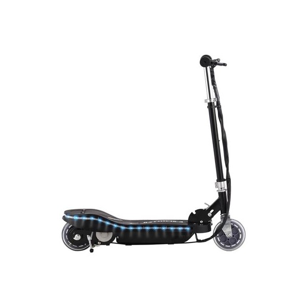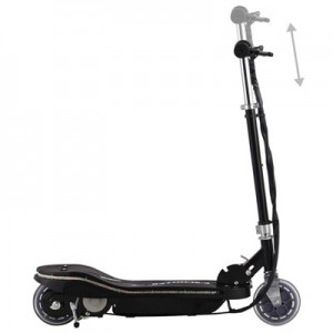 Color: NegroDimensiones: 74 x 15 x 95 cm (largo x ancho x alto)Neumáticos: 14,5 cmCapacidad de carga máxima: 50 kgPotencia del motor: 120 WVelocidad: 12 km/hControlador de potencia de motor en el manillar derechoCon freno de pinza traseroControlador de freno en el manillar izquierdoAltura del manillar regulableCon diseño plegableCon tira de LED de 3 colores2 x Baterías 12 V / 4.5 Ah incluidasAdvertencia: Este juguete no es ade